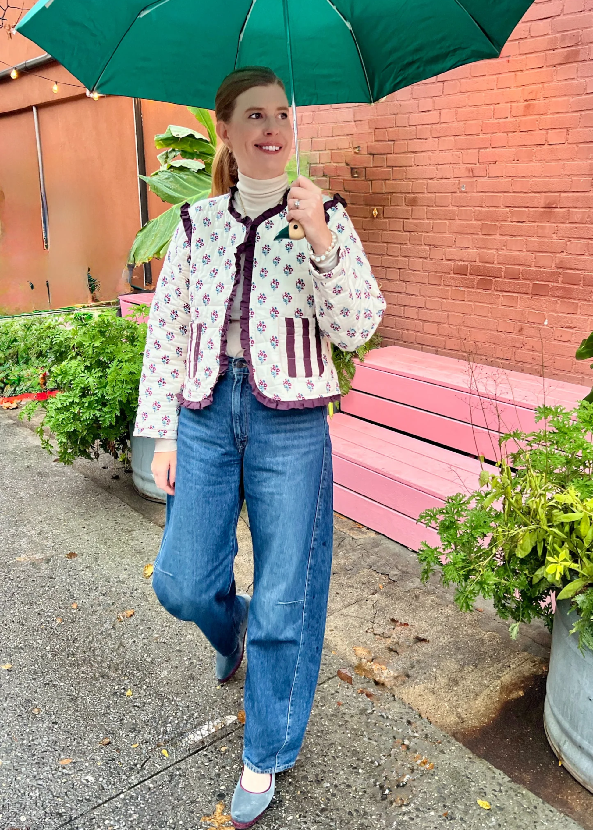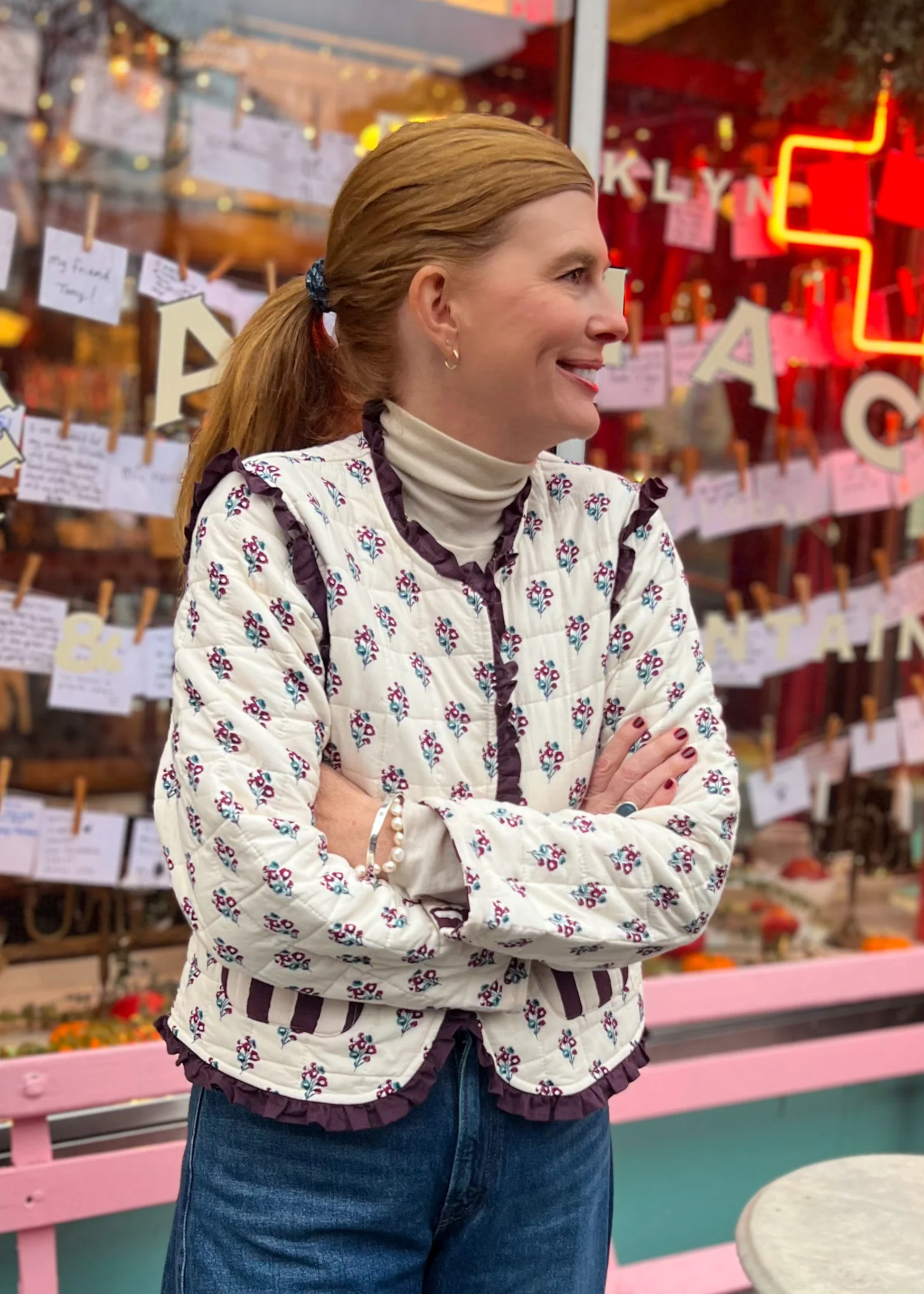Emmie Jacket, burgundy stripe / cream vintage floral