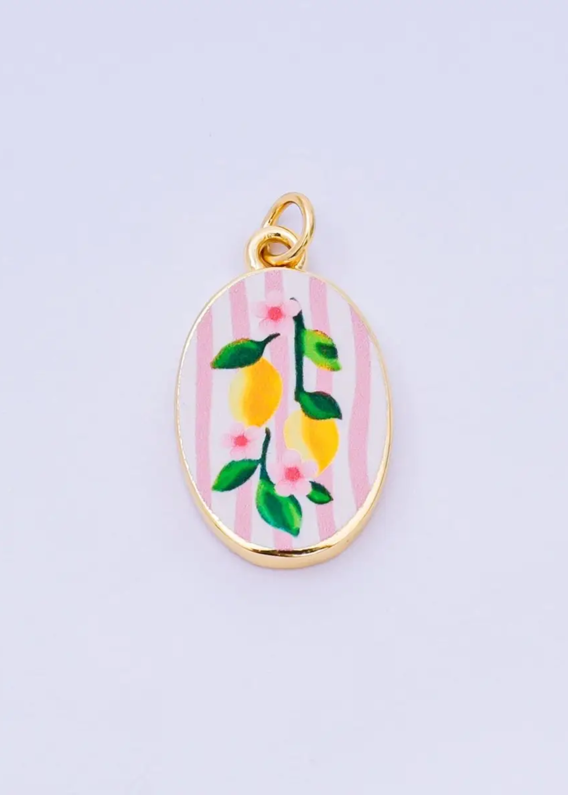 Enamel pink lemon oval charm