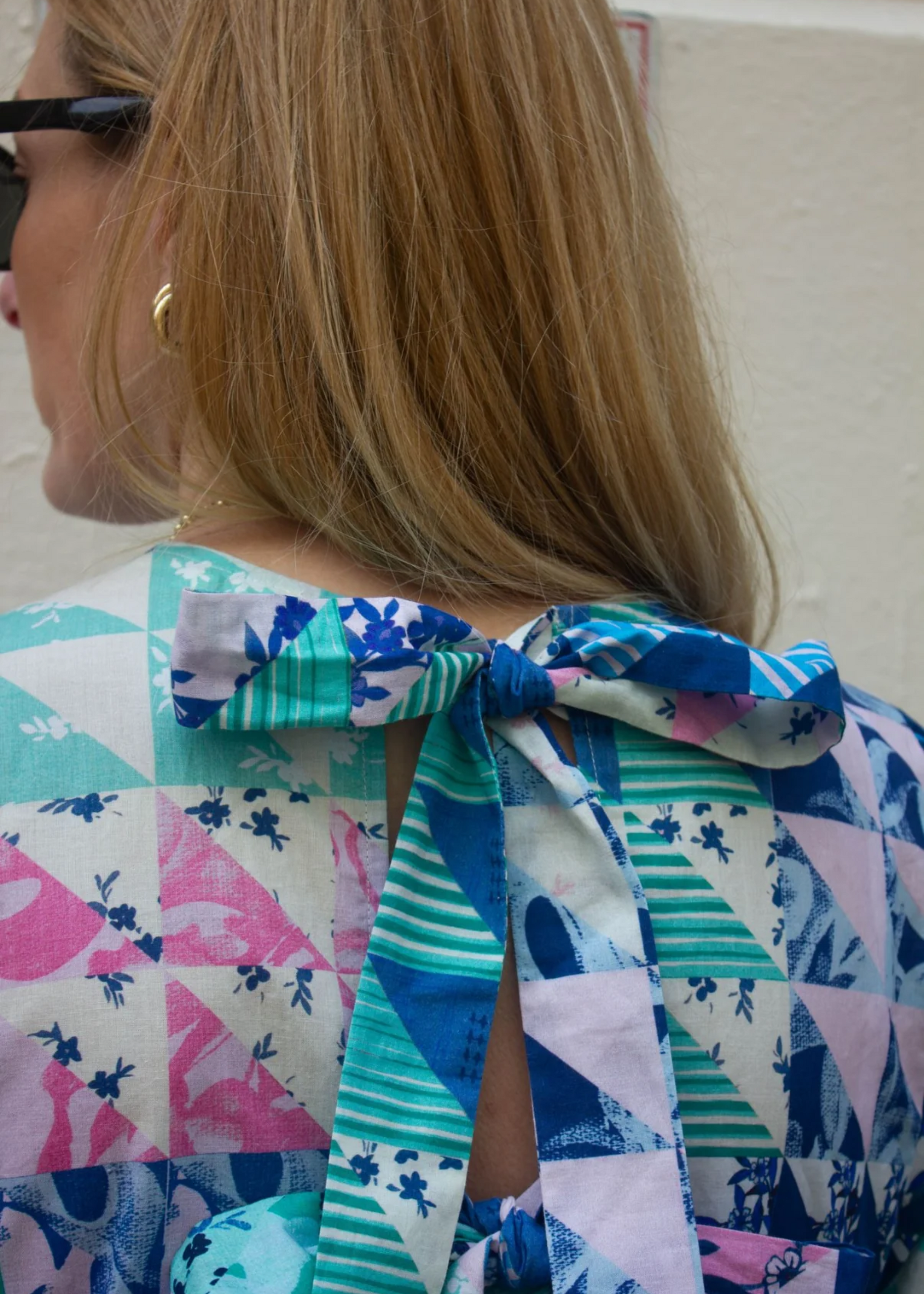 Lara dress, blue and green geo